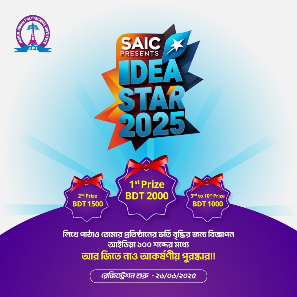 📢 লিখে পাঠাও তোমার প্রতিষ্ঠানকে নিয়ে এমন একটি বিজ্ঞাপন আইডিয়া (১০০ শব্দের মধ্যে) যা ভর্তিচ্ছুদের মন ছুঁয়ে যাবে!📬 সেরা আইডিয়া জিতবে আকর্ষণীয় পুরষ্কার🎁 — আর তোমার কনসেপ্ট ব্যবহার করা হতে পারে আসল মার্কেটিং ক্যাম্পেইনে!✅ অংশ নিতে পারবে যেকোনো শিক্ষার্থী📅 সময় সীমিত, তাই দেরি না করে এখনই অংশগ্রহণ করো!